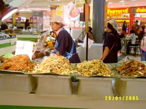 Wir aßen dort einige Tord Man Pla und Hor Djor, beides ausgebackene