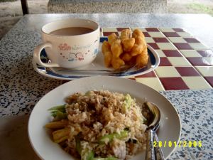 Heute hatte ich zum Frühstück gebratenen Reis.