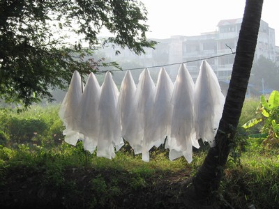 waschen und trocknen es. Dann wird es wieder verkauft und so verdienen
