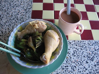 ein Frühstück, hier mal Huhn mit Gemüse. Aber wie fast immer