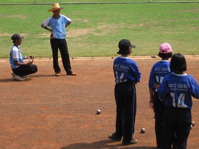 Immerhin zeigte sie (links) uns wie man die Kugel richtig wirft.