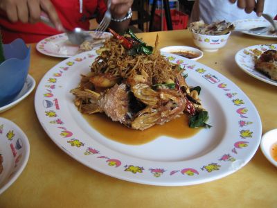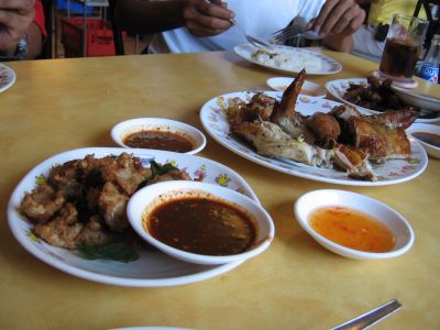 Außer Huhn hatten wir noch Rind, Schwein und Fisch. Das Essen