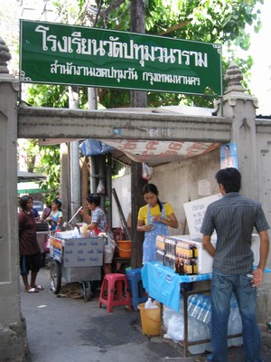 Nahe der Siam Station liegt der Tempel Wat Pathumwanaram. Hier die Gasse, die zum Tempel und auch zu dessen Schule führt.