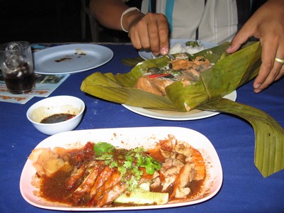 Frau Pla Hor Mork, in Bananenblättern gedünstet, nur 30 Baht.