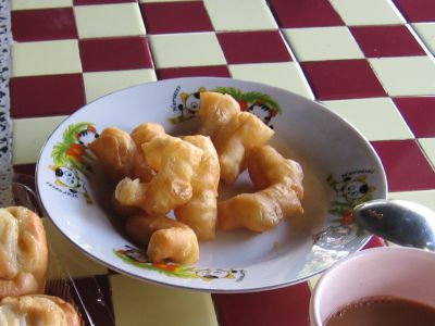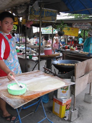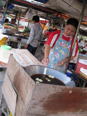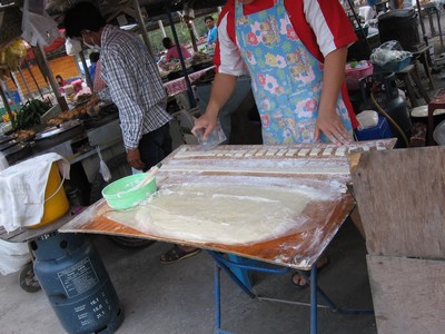 Und hier eine Vorführung, wie denn die Pla Tong Goh gemacht werden, die ich ihrem Aussehen nach Chromosomenkuchen nenne.