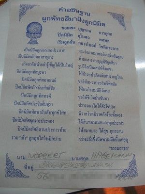 Zettel mit eigenem Namen (soll Glück bringen, siehe unten), Geldspenden.