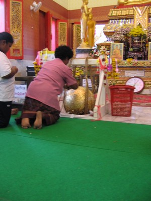 Ein Blatt Gold wurde an den ersten Grundstein gedrückt (unten